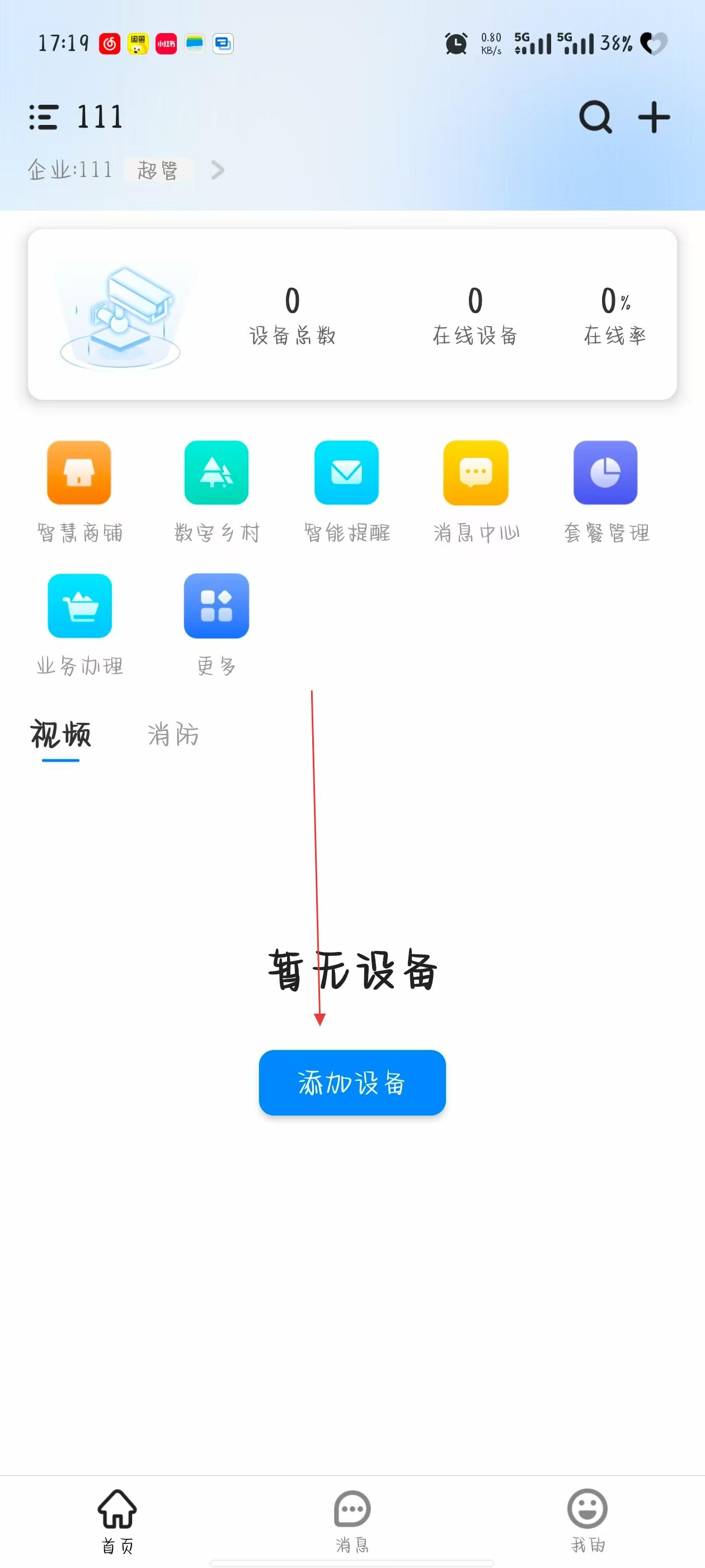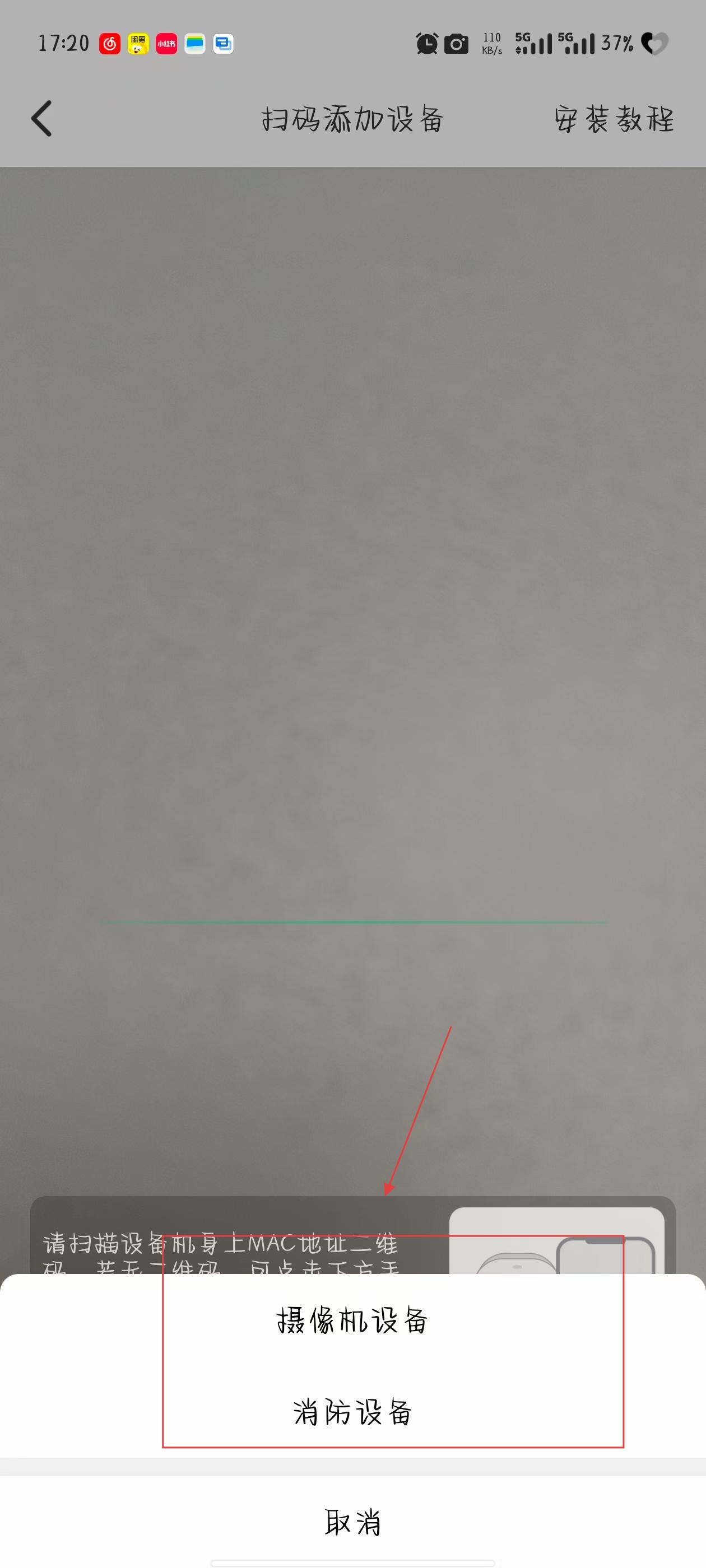 1、打开移动千里眼APP,在首页点击添加设备按钮,进入扫码添加设备页面。