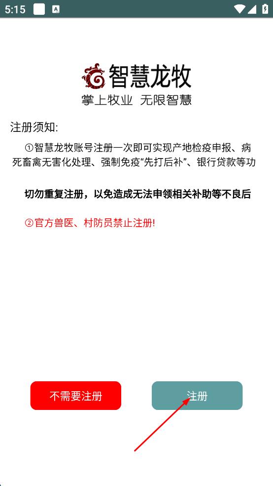 4、按照后续提示,依次填写相关注册信息,完成信息提交后,即可完成智慧龙牧APP的注册操作,后续可使用注册账号登录APP。