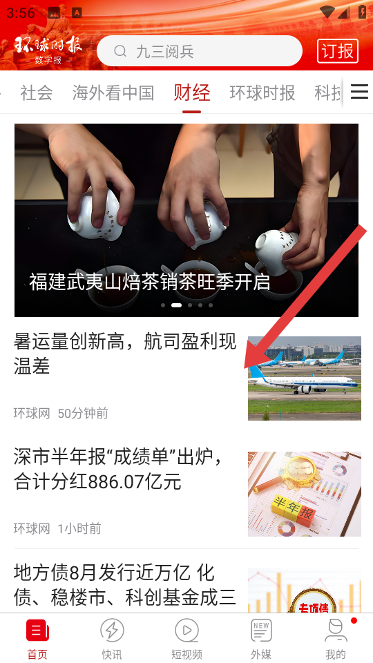 1、打开环球时报相关APP,在首页选择要阅读的新闻,进入新闻详情的页面。