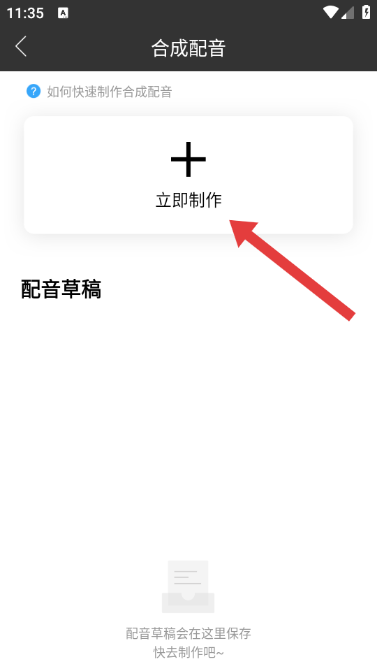 2、在合成配音页面,点击立即制作,进入普通配音编辑的界面。