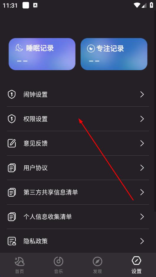 1、打开“我的睡眠记录”应用,点击底部导航栏的设置。