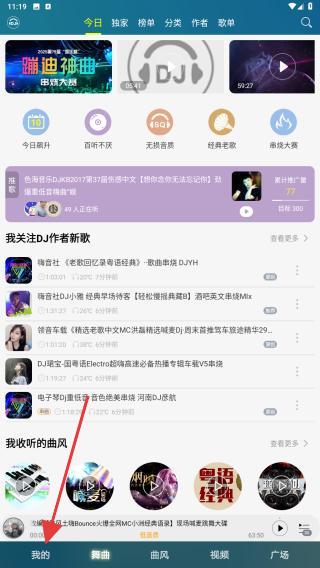 1、启动dj音乐盒APP进入到首页内,点击左下角我的图标。