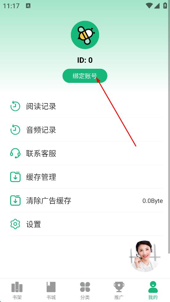 3、在个人中心页面,点击“绑定账号”,进入到登录页面。