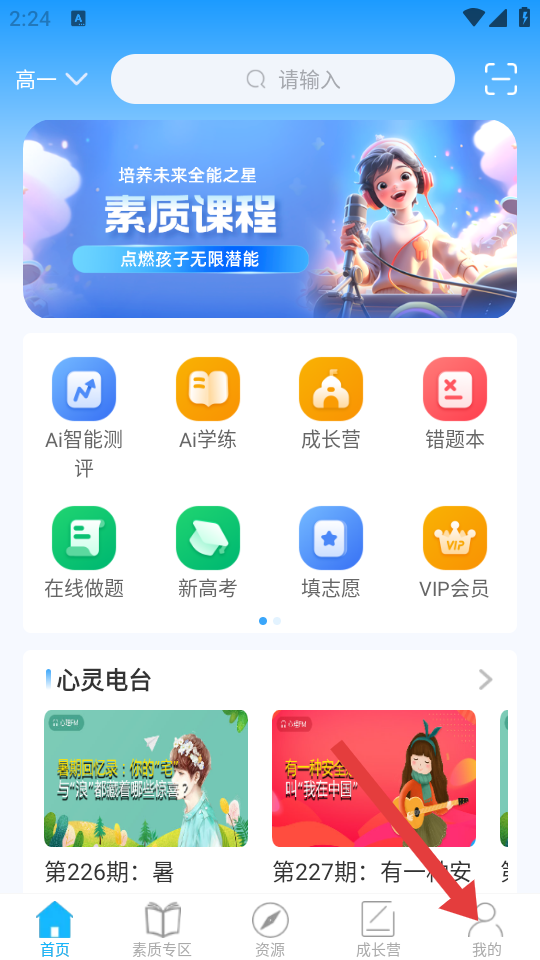 1、在赶考状元首页,点击底部导航栏的我的,进入个人中心页面。