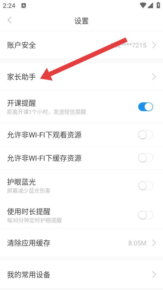 3、在设置的页面,点击家长助手的选项,进入家长守护关联界面。