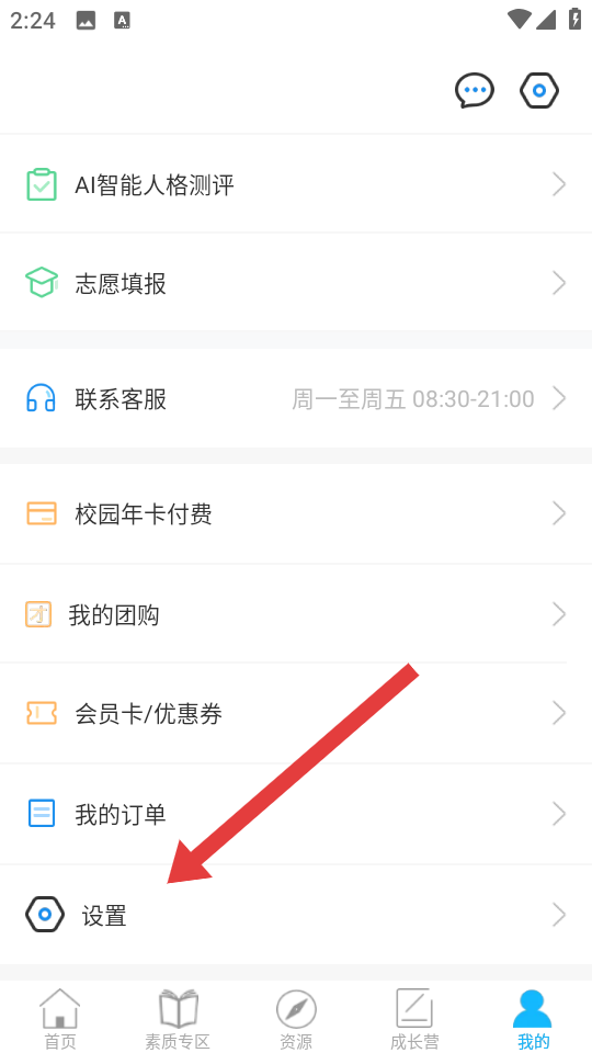 2、在我的页面,往下划拉后点击设置的选项,进入设置的界面。