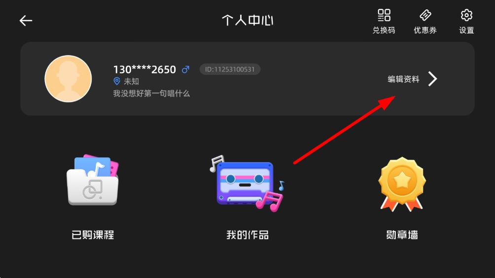 2、在个人中心界面中,点击编辑资料选项,进入编辑资料页面。