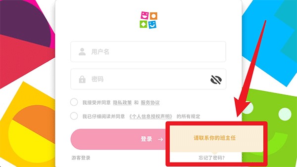 2、若出现无法登录提示,系统会弹出「请联系你的班主任」提醒,可通过老师重置账号信息;
