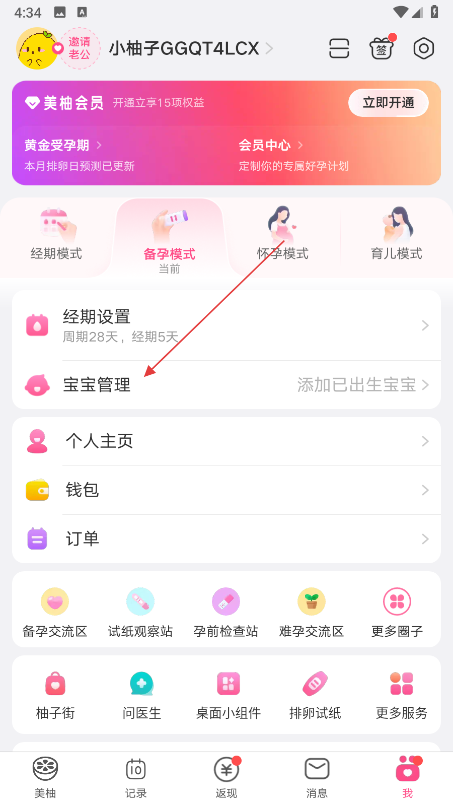 2、在个人页面中,点击宝宝管理选项,进入宝宝管理界面。