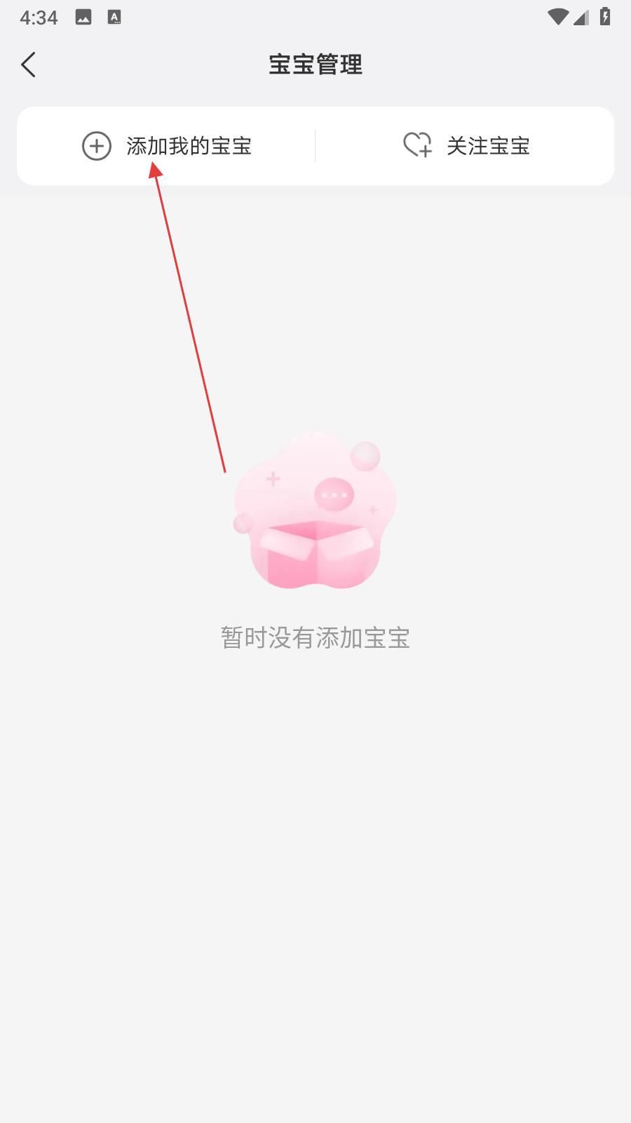 3、在宝宝管理界面,点击添加我的宝宝,进入添加宝宝信息页面。
