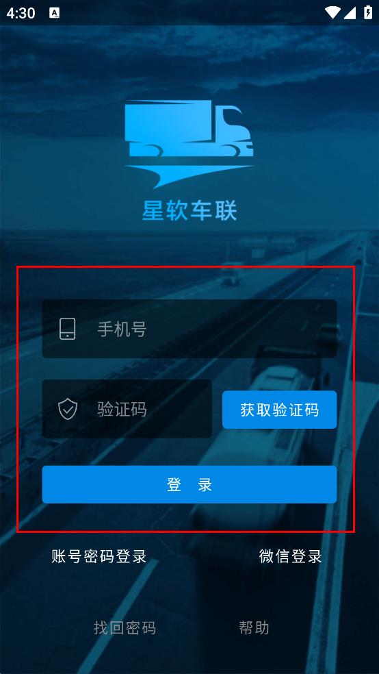 4、输入收到的验证码,点击“登录”,即可登录星软车联App,后续可使用平台提供的动态监控、轨迹查询等服。