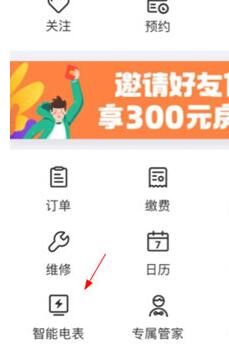 2、然后找到位置的【智能电表】功能,点击进入之后,可以查看当前用电详情。