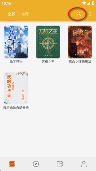 1、在本站内下载安装并打开软件,首页点击“搜索”按钮,输入书名,点击搜索结果进入阅读页。