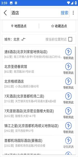 4、包括酒店也可以进行导航,还可以查看地图选点、收藏地点。
