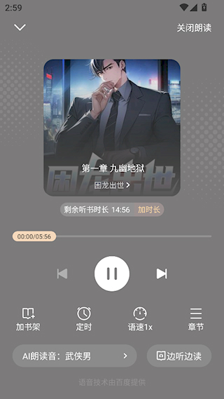 2.点击屏幕中心弹出阅读工具栏,点击右下角的听书