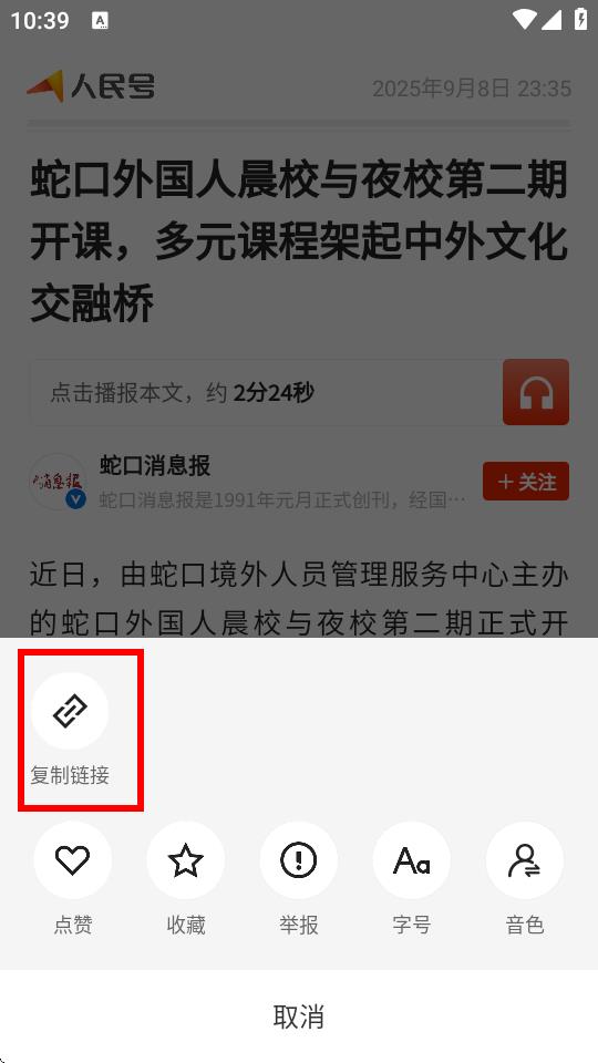 4、点击分享图标后,会弹出分享选项菜单,在菜单中选择复制链接,之后就可以将复制的链接分享给他人了。