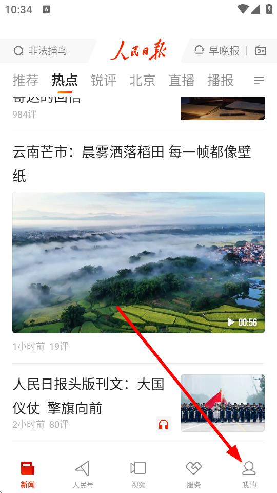 1、打开人民日报APP,点击底部导航栏中的我的选项进入个人页面。