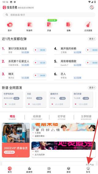 1、打开虫虫吉他app进入到首页,点击右下角账号的按钮。