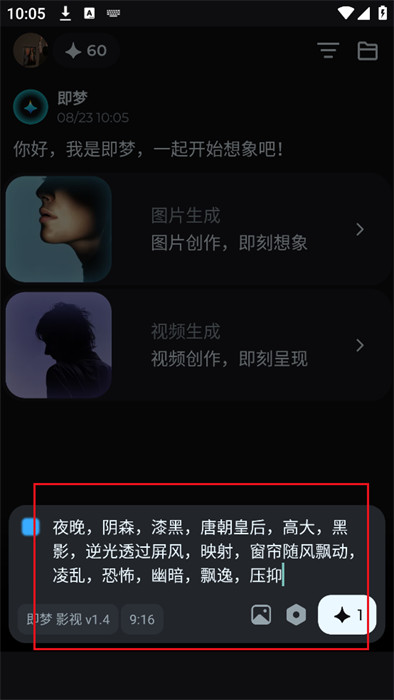2、在图片生成界面的输入框中,输入想要生成的画面描述。