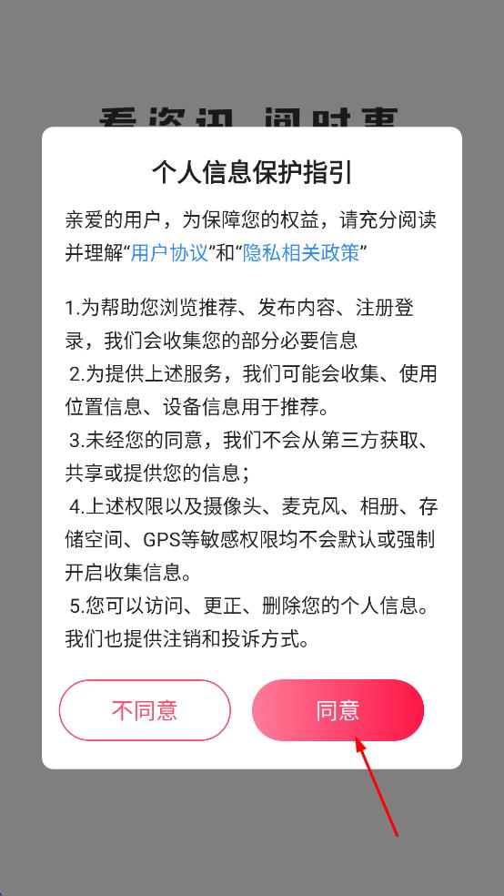 1、打开江门邑网通,在弹出的隐私政策界面,找到“同意”按钮,点击该按钮。