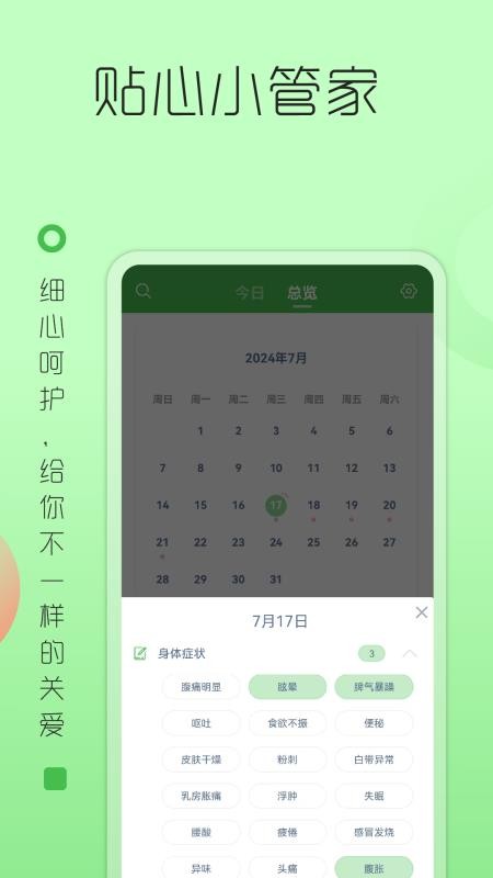 提供经期日历能够展示用户的经期、安全期、排卵期等,及时查看经期情况;