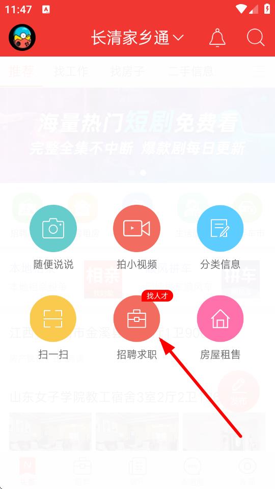 2、在弹出的发布选项界面中,点击招聘求职图标。