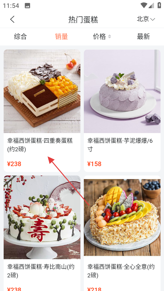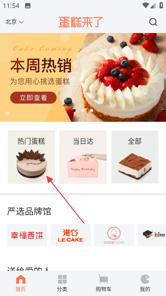 1、在蛋糕来了首页,点击热门蛋糕,进入热门蛋糕列表页面。
