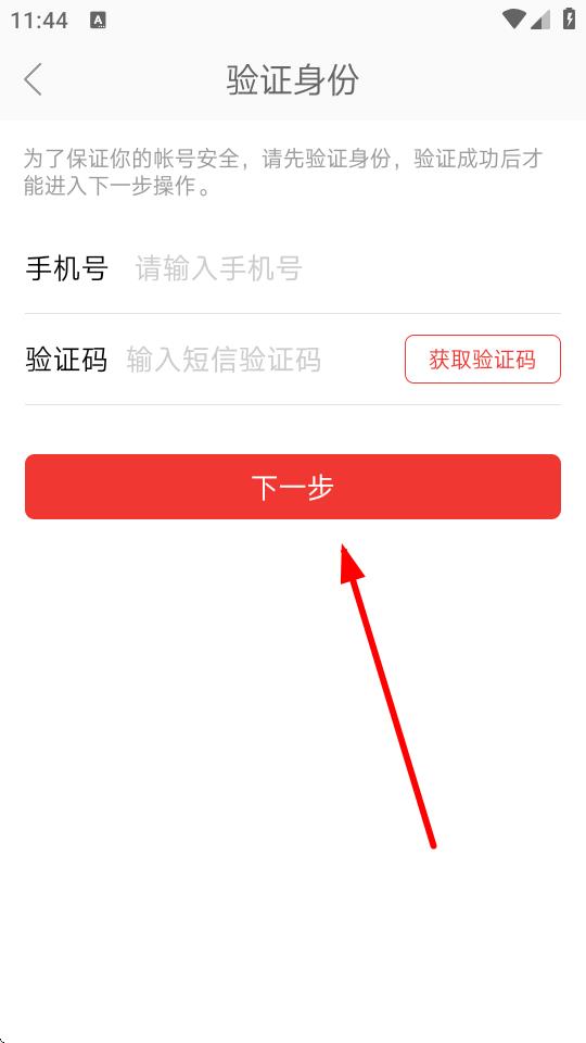 4、在验证身份页面,输入手机号并点击获取验证码,然后点击下一步,按后续提示完成密码修改。