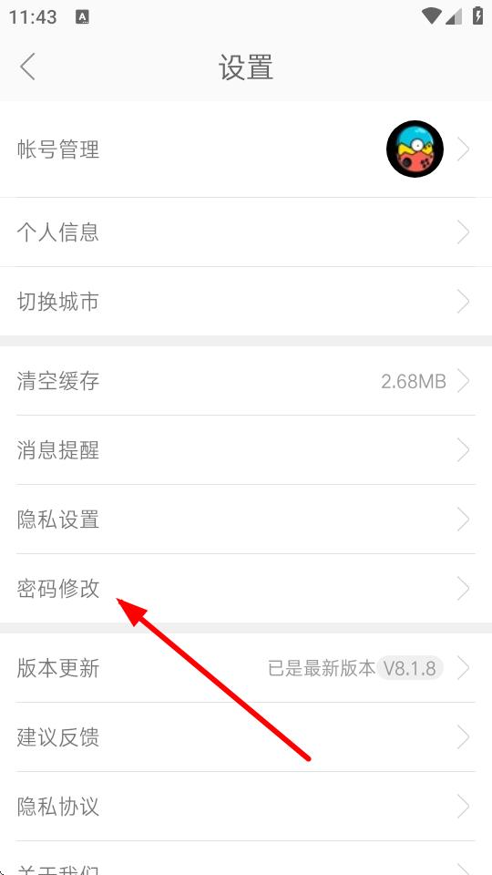 3、在设置界面中,找到并点击密码修改选项,进入身份验证页面。