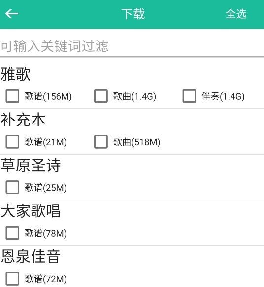 5、选择想要下载的诗歌,选择好后点击“开始下载”。