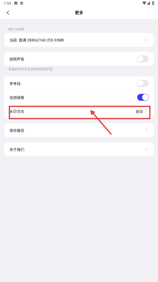 3、在更多设置页面,点击水印方向选项,进入水印方向设置界面。