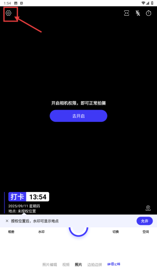1、打开拍照类应用,点击界面左上角设置图标,进入设置相关页面。