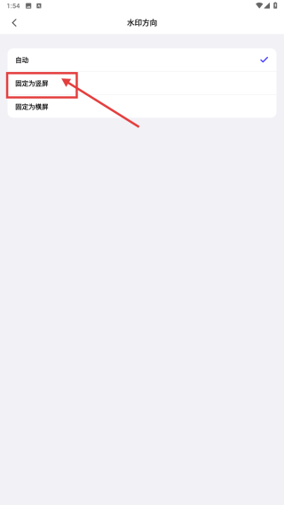4、在水印方向设置界面,选择固定为竖屏选项,完成水印方向设置。
