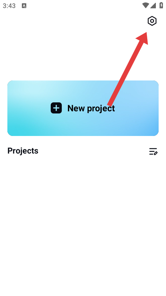 1、在CapCut主界面,点击右上角齿轮形状的设置图标,进入设置界面。