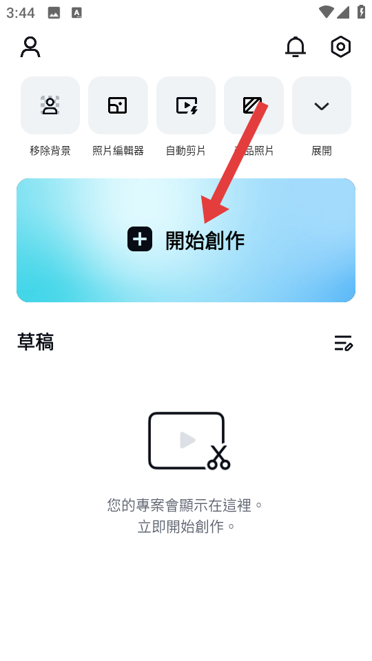 4、设置完成后,界面文字将切换为繁体中文如開始創作,即成功设置中文显示。
