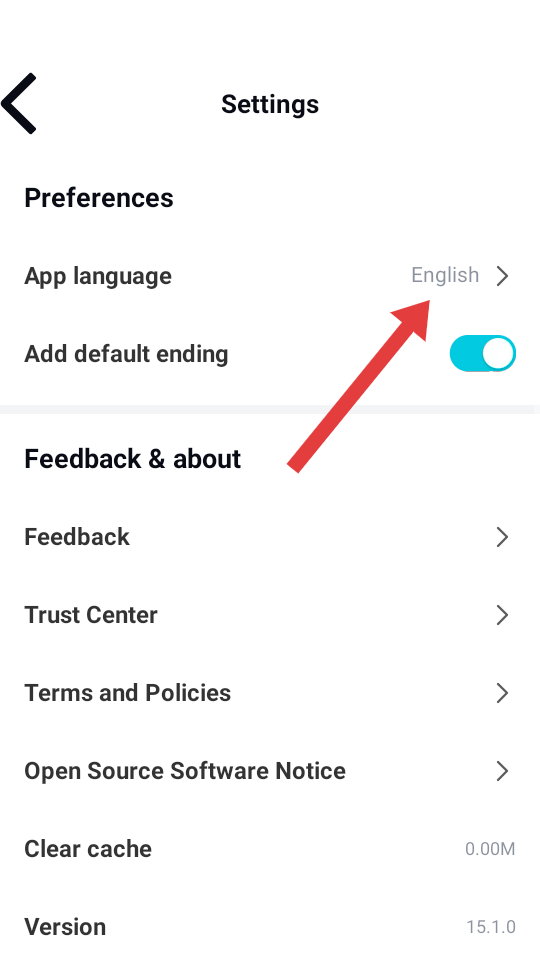 2、在设置页面,点击App language选项,进入应用语言选择界面。