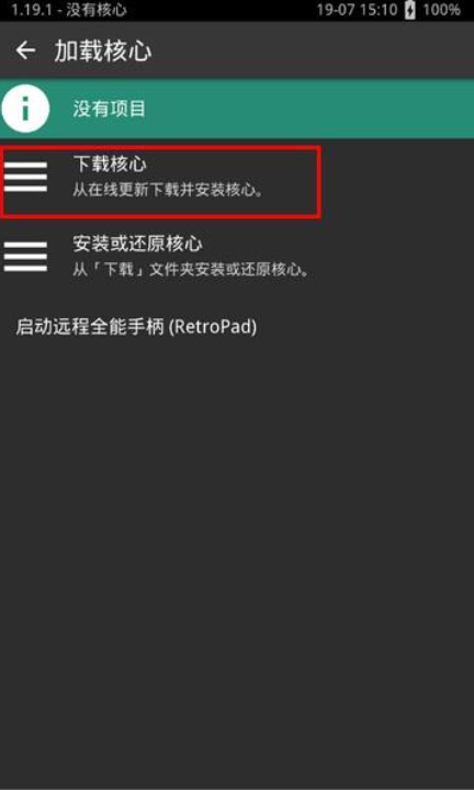 2、首次会显示没有游戏核心,需要在线下载游戏核心,点击下载。