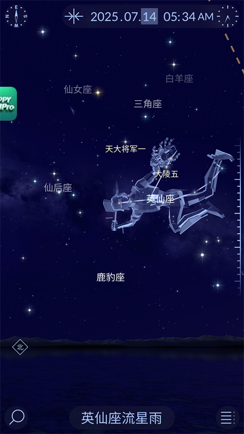 1、实时星空匹配:在搜索栏输入流星雨名称,软件会标记出辐射点位置(如英仙座流星雨的辐射点位于英仙座方向)。