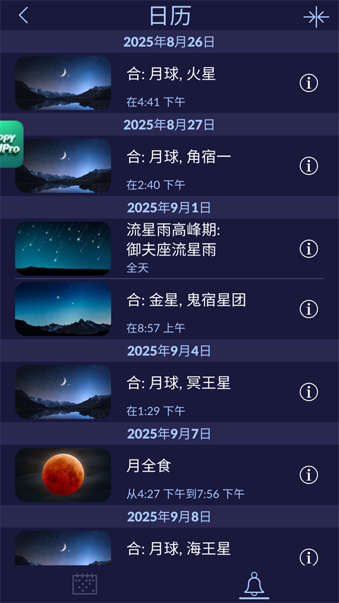 2、通过「天文日历」功能,筛选未来一段时间内的流星雨事件。