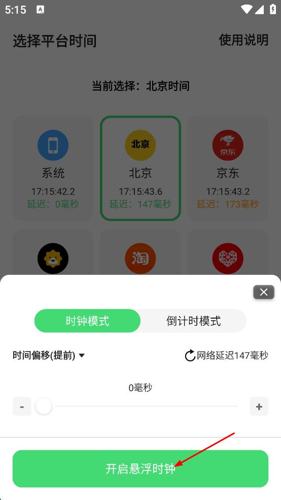 拥有两种悬浮模式,时钟模式和倒计时模式。可以在任意APP上悬浮,秒杀必备神器!