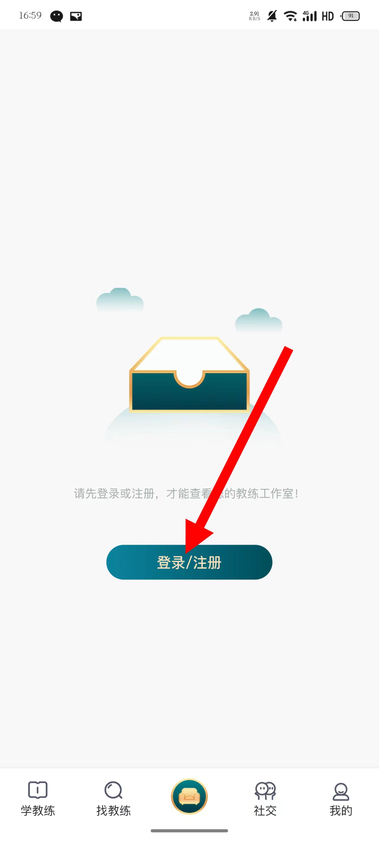1、打开东方教练APP,点击底部导航栏的工作室选项。