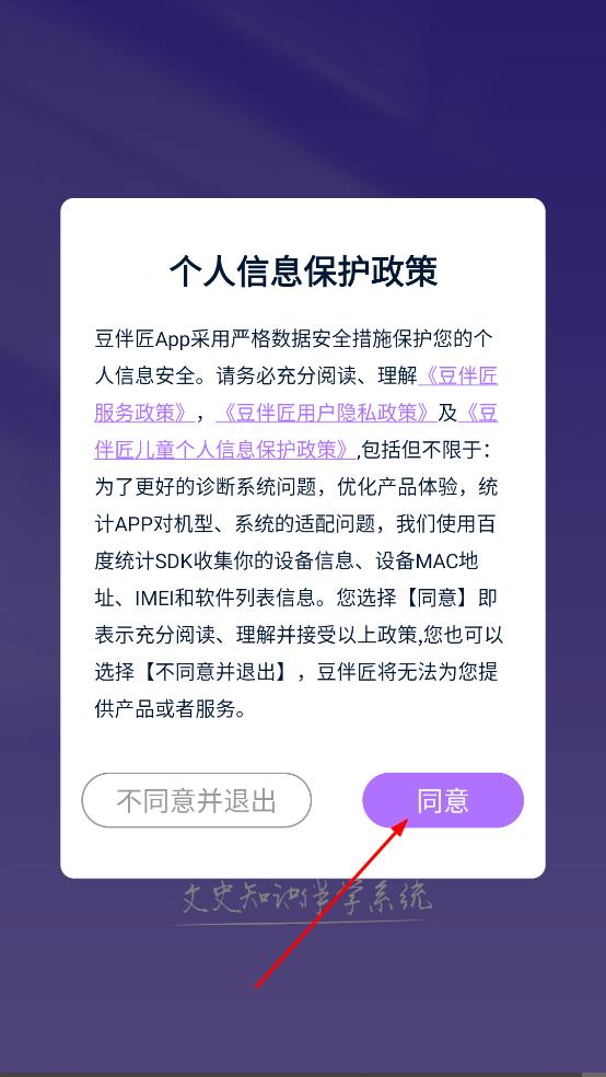 1、在个人信息保护政策弹窗中,点击同意,进入豆伴匠主界面。
