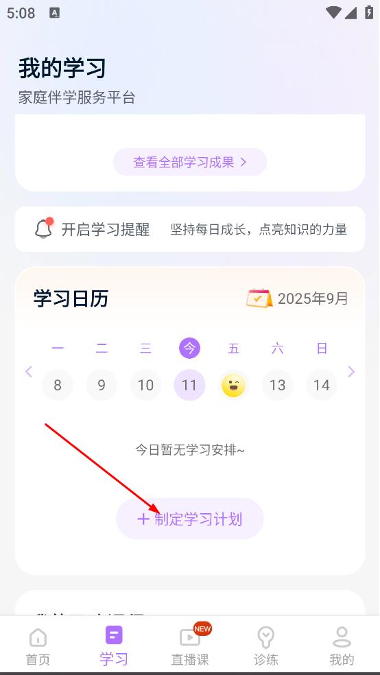 3、在我的学习页面,点击制定学习计划,进入管理学习计划页面。