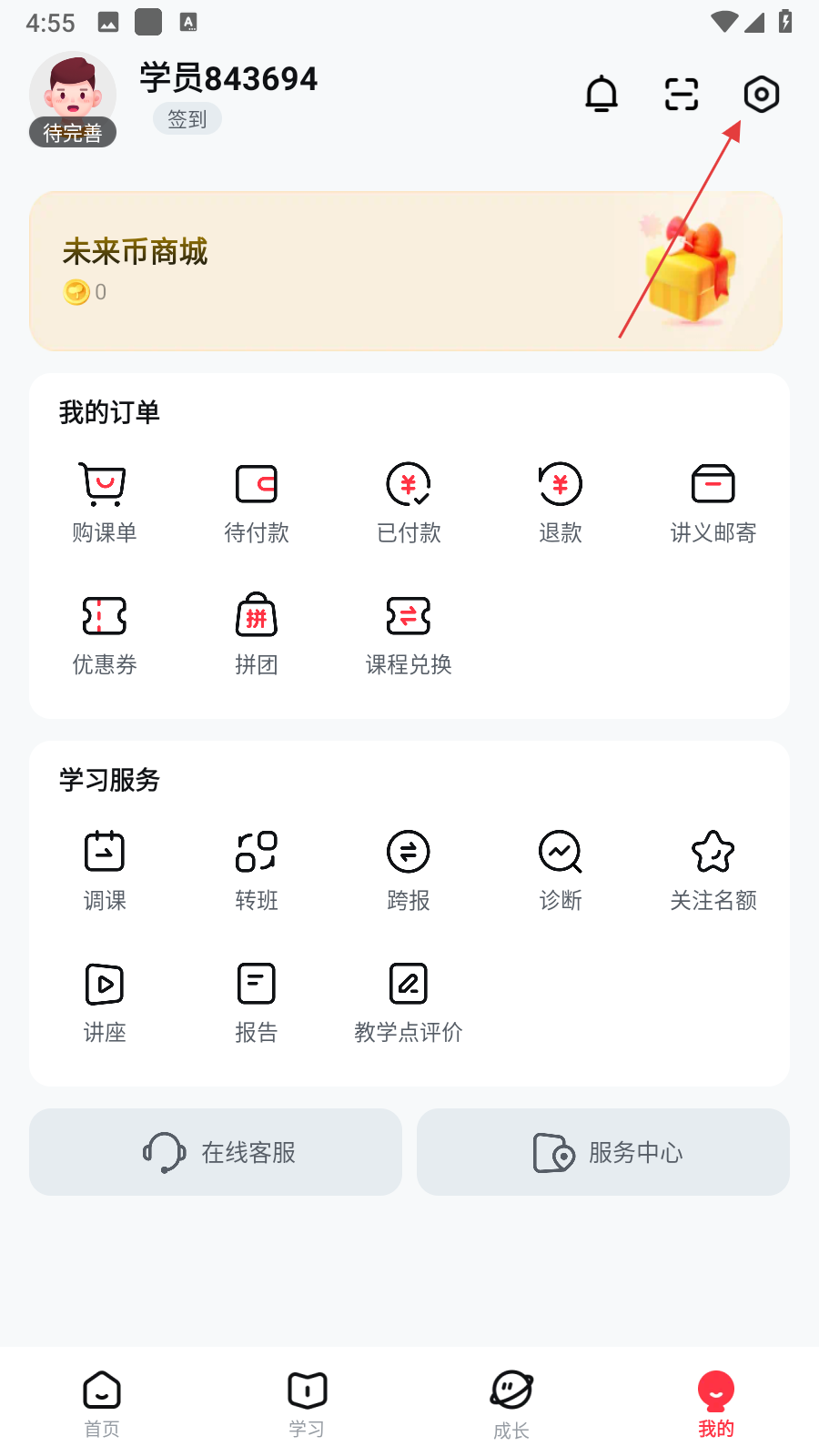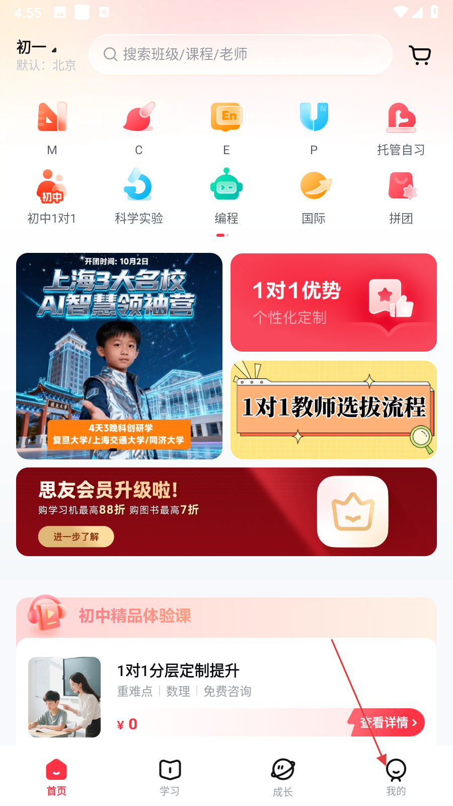 1、打开学而思APP,点击右下角我的,进入个人中心页面。