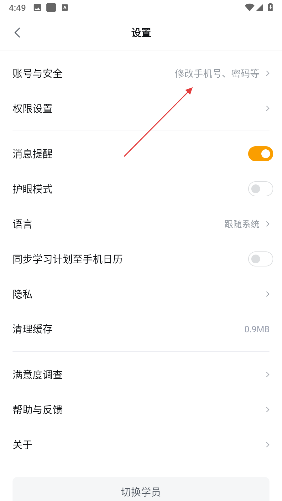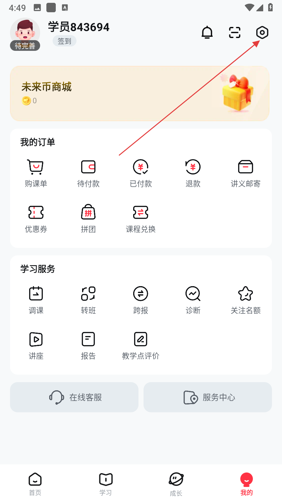 1、打开学而思APP,在个人中心页面,点击右上角的设置图标,进入设置界面。