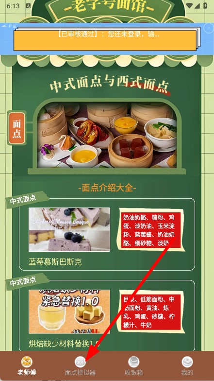 1、打开APP,点击底部导航栏的面点模拟器选项,进入面点模拟器功能页面。