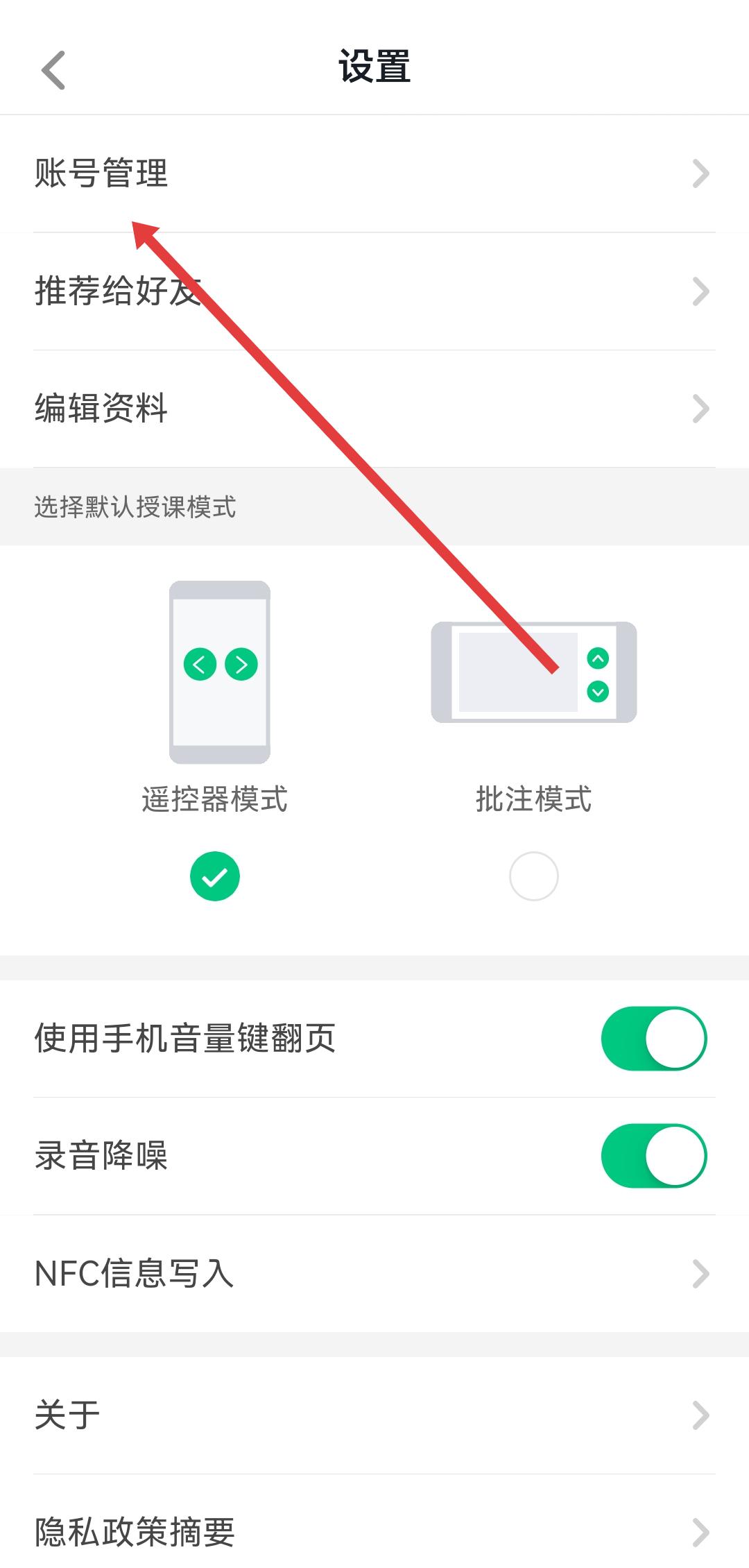 2、在设置页面,点击账号管理的选项,进入账号管理界面。