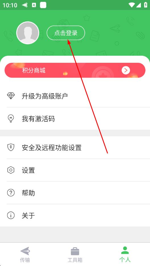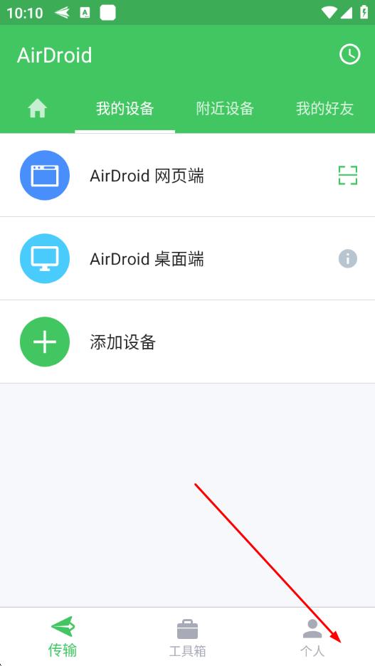 1、打开AirDroid应用,点击底部导航栏中的个人选项。