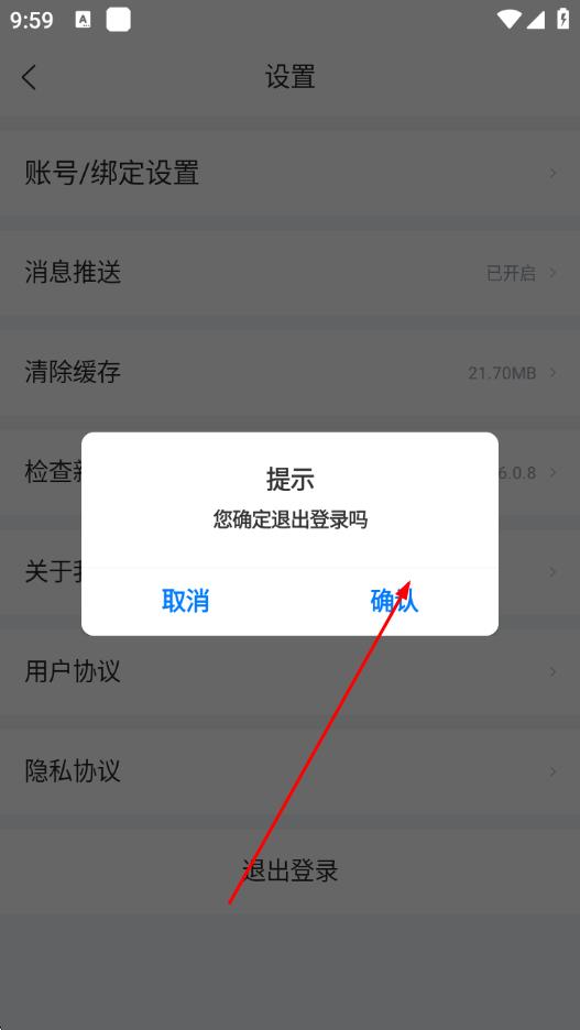 4、在弹出的您确定退出登录吗提示框中,点击确认按钮,即可完成账号退出操作。