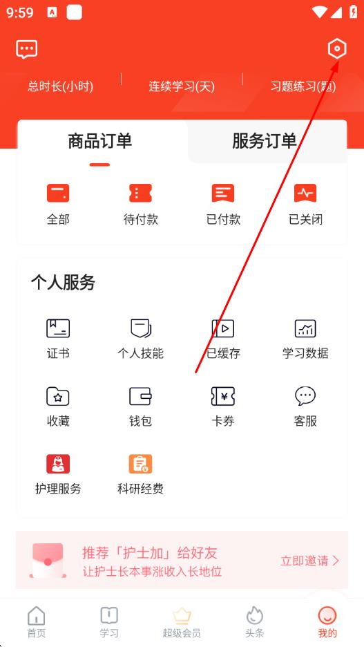 1、打开护士加应用,点击底部导航栏最右侧的我的选项。